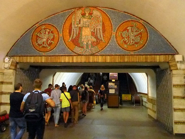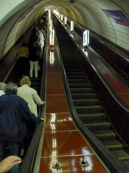 Kiew hat ein eindrucksvolles U-Bahnsystem. Lange und schnelle Rolltreppen.