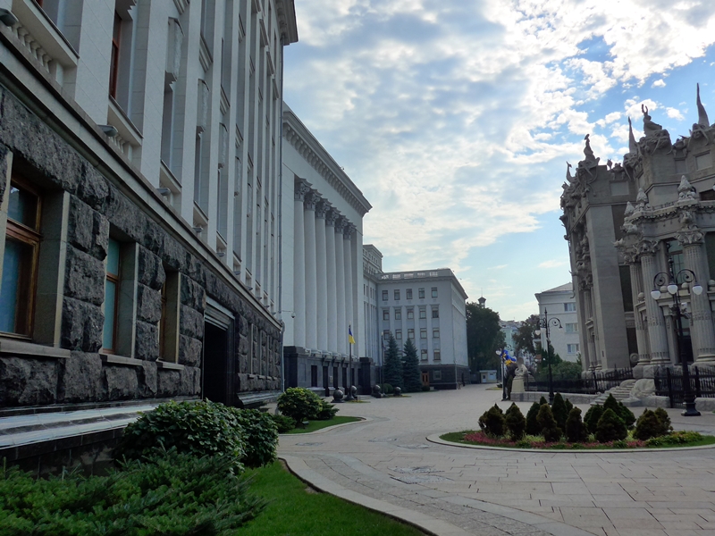 Das Präsidialamt in der Vuliza Bankova auf der Linken Seite