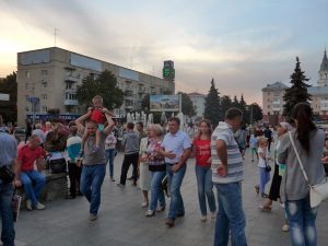 Der Stein erinnert an das Alter der Stadt Shitomir und ist attraktiv für kindliches Spiel. Im Park und dem zentralen Platz wird gefeiert. Dem Sprachunkundigen erschließt sich nicht, was gefeiert wird.