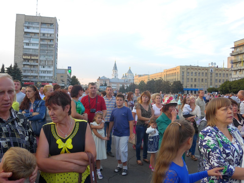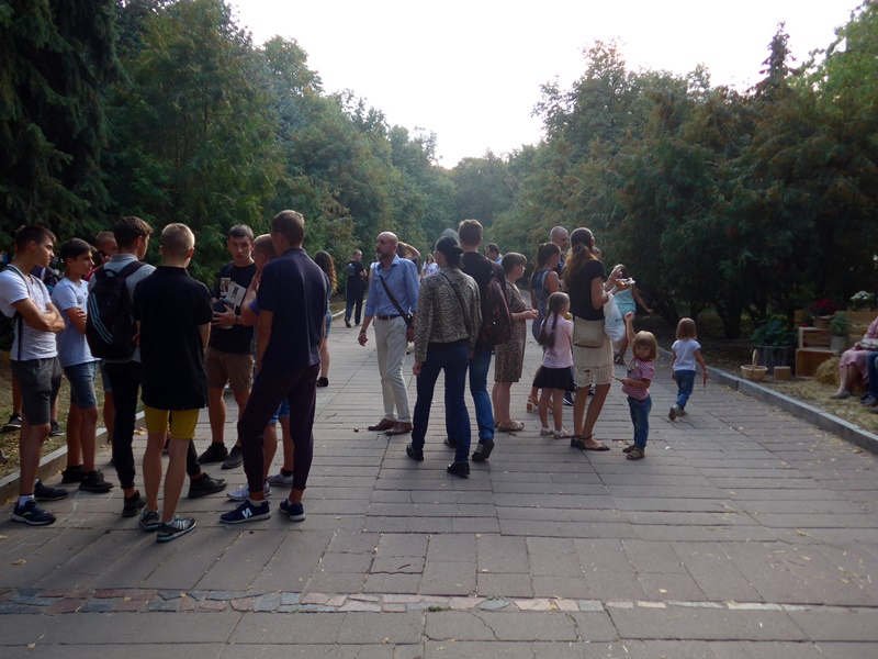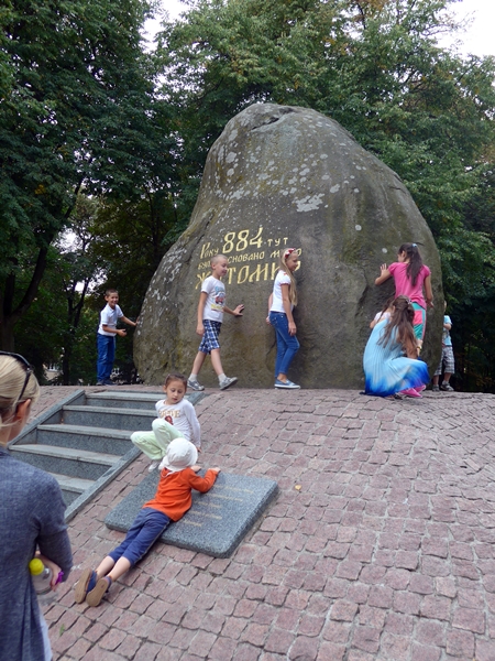 Der Stein erinnert an das Alter der Stadt Shitomir und ist attraktiv für kindliches Spiel. Im Park und dem zentralen Platz wird gefeiert. Dem Sprachunkundigen erschließt sich nicht, was gefeiert wird.