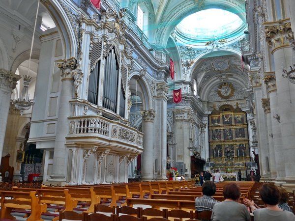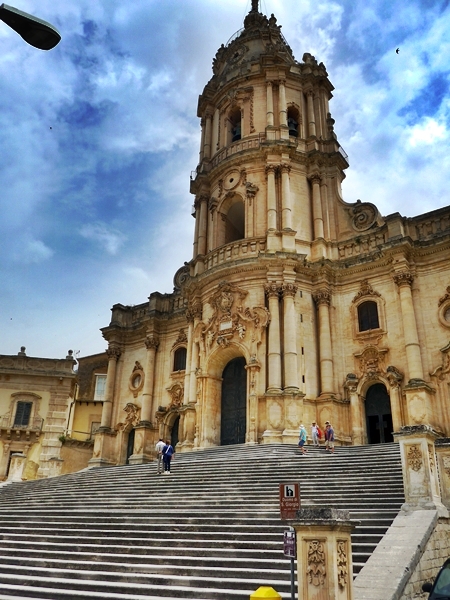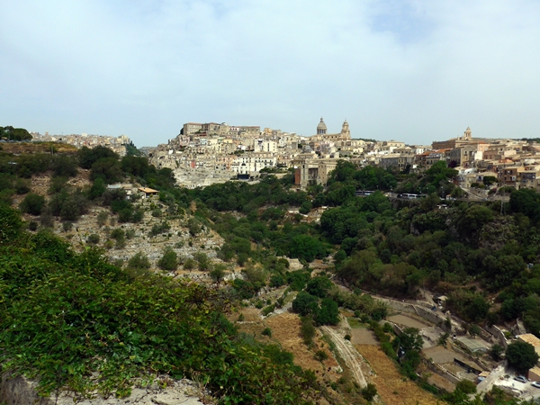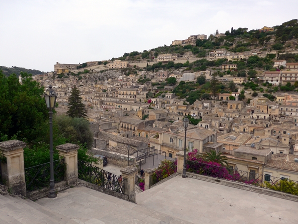 Von den Bergen kommend geht es erst einmal ins Tal nach Modica. Von dort ein erster Blick auf die Stadt, Ragusa nicht unähnlich. Blickfang am Hang gegenüber die Kirche S. Giorgio. Mit dem Fahrrad Hügel-auf und dann auch Hügel-ab, um hinzukommen. Malerisch. Die Gassen, die Kirche, der Blick über das Tal.