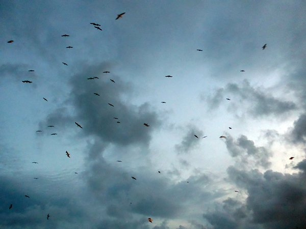 Leinen los. Am Abend des zweiten Tages saß ich auf der Fähre nach Palermo. Die Stadt mit dem Vesuv im Hintergrund, der sich hinter Wolken verbarg. Im Abendlicht sind alle weißen Möven schwarz, wenn es nicht doch Komorane waren.